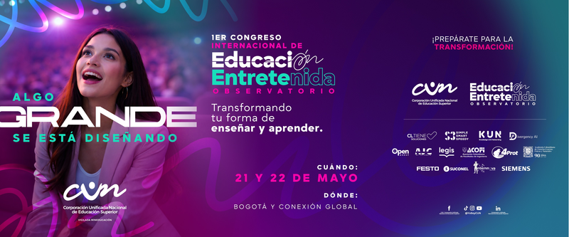 Regístrate ahora: https://cun.edu.co/congreso-de-educacion-entretenida/