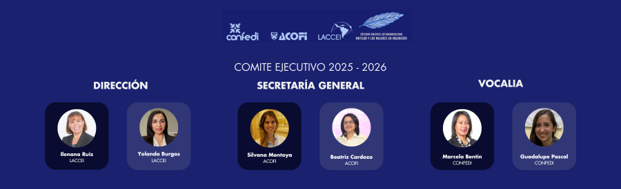 El Comité ejecutivo está integrado por representantes de las tres organizaciones fundadoras de la Cátedra, constituida en 2020. En esta nueva etapa, la dirección general estará a cargo del Consorcio de Instituciones de Ingeniería de América Latina y el Caribe (LACCEI), representado por la ingeniera Ileana Ruiz. La secretaría general será asumida por la Asociación Colombiana de Facultades de Ingeniería (ACOFI), representada por la ingeniera Silvana Montoya. Por su parte, la vocalía estará a cargo de Marcela Bentín, en representación del Consejo Federal de Decanas y Decanos de Ingeniería de Argentina (CONFEDI). El trabajo conjunto de estas instituciones ha sido clave para consolidar un espacio regional que impulsa transformaciones profundas y sostenidas en los entornos formativos y profesionales de la ingeniería, con una perspectiva inclusiva y de equidad de género.